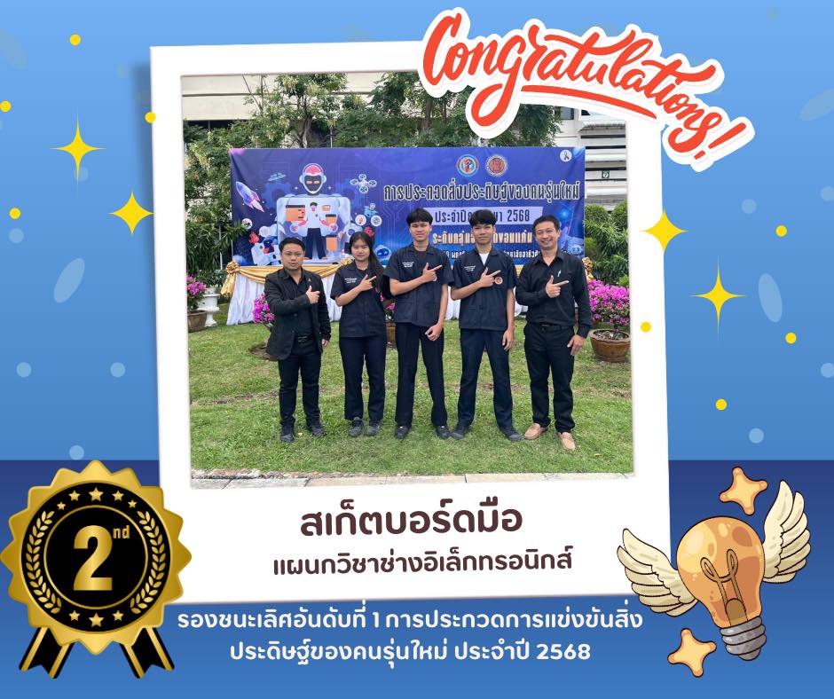 ข่าวประชาสัมพันธ์ 🥇 สุดยอด! วท.นครขอนแก่น คว้าแชมป์สิ่งประดิษฐ์ของคนรุ่นใหม่ ด้วย “สเกตบอร์ดมือ”! 🏆21 พฤศจิกายน 202527 พฤศจิกายน 2025